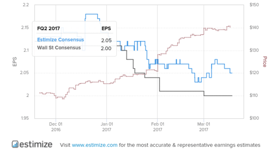 ここでは251 Estimizeアナリストは信じているものです$ AAPLは、 [4月25日AMCを報告] Q2 2017年の収益のために報告します