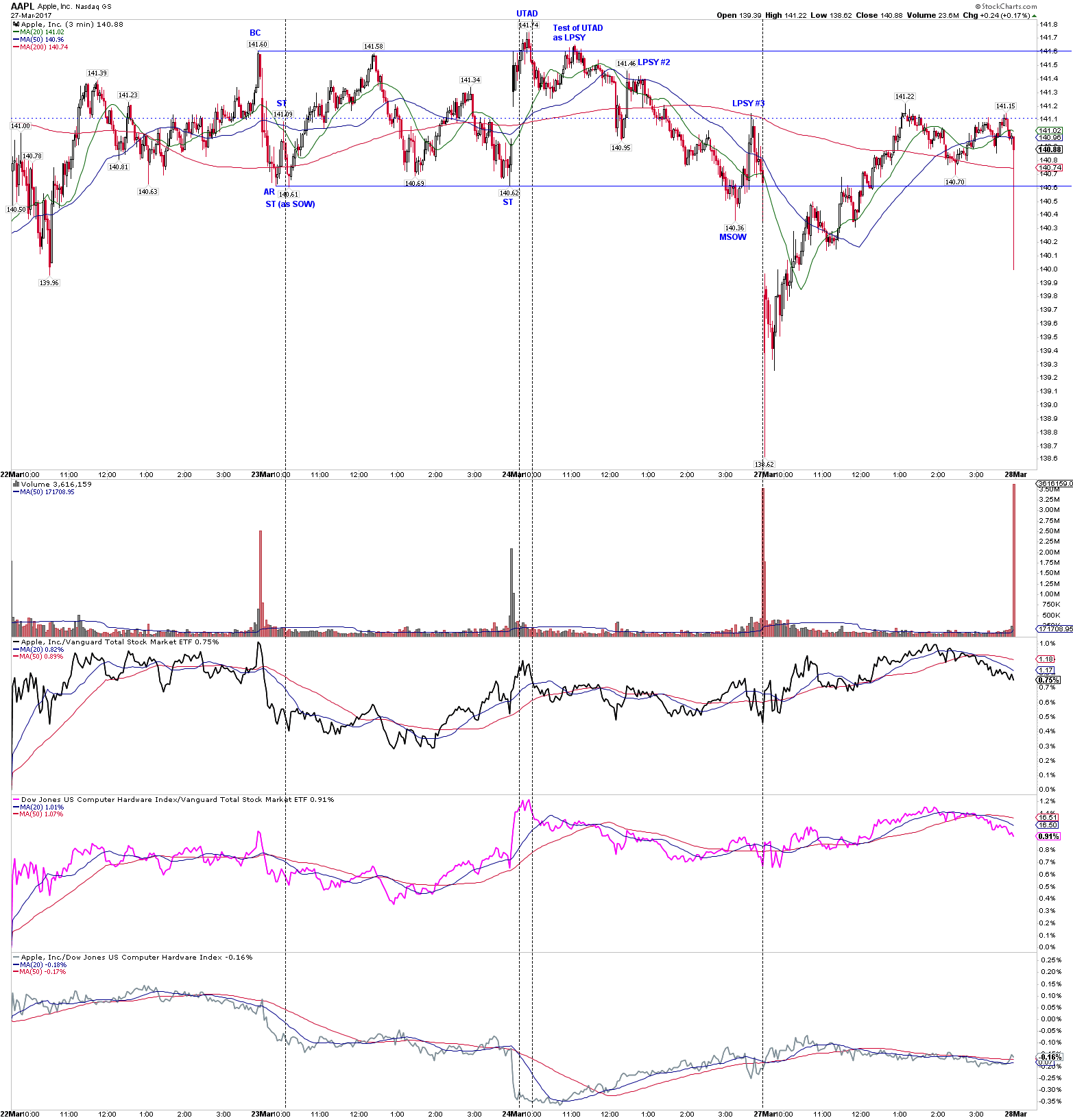 Wyckoff法に基づく$ AAPLの日中構造物価分析。重要な問題は次のとおりです。