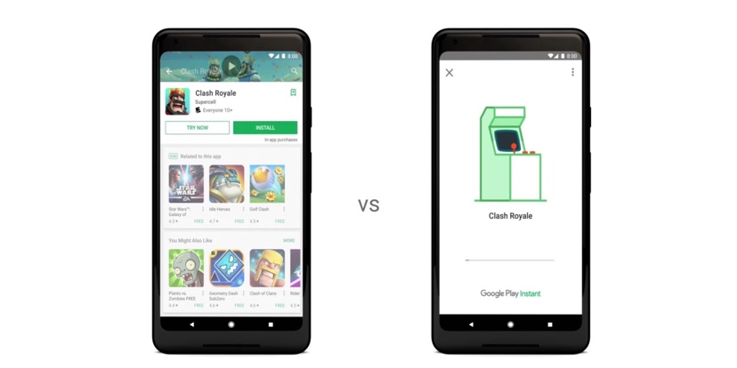 ユーザーはClash Royale、Friends 2、Bubble Witch 3 Sagaなどの新しいInstant PlayplayコレクションやGoogle Playゲームの「Arcade」セクションで、インスタントアプリをデモすることができます。現在、クローズドベータ版であるGoogle Playインスタントは、今年後半より多くの開発者に公開される予定です。