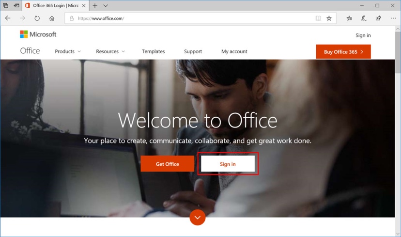 開始するには、MicrosoftのOffice.com WebサイトでOffice 365アカウントにログインします。