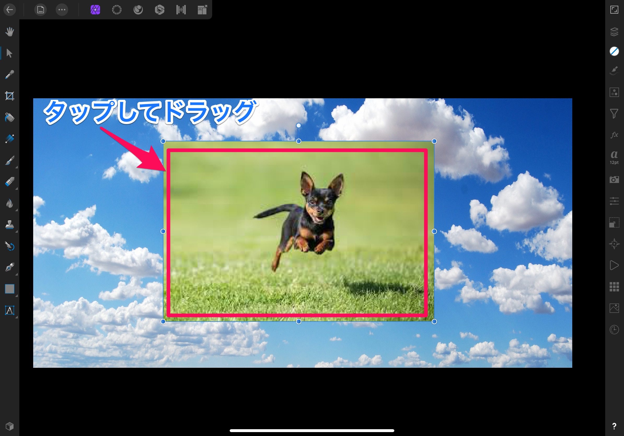 レイヤーを移動するには、一つの指で画像の内側をタップしそのままドラックします。