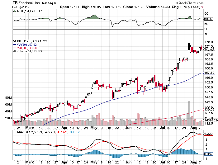 Facebook, Inc. 【FB】投資情報: 2017年08月10日