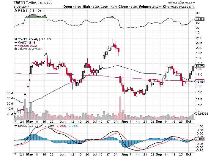 Twitter Inc. 【TWTR】投資情報: 2017年10月10日